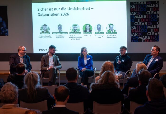 Zum TechDIALOG26 luden wir Expertinnen und Experten aus unterschiedlichsten Branchen sowie starke Partner auf den Campus der ennit ein, um die zentralen Zukunftsthemen des Mittelstands zu beleuchten. Greifbar und praxisnah. Im Mittelpunkt standen Resilienz, unternehmerische Souveränität und IT‑Sicherheit als entscheidende Erfolgsfaktoren in einer zunehmend digitalen Welt. Kompetent und inspirierend präsentiert und mit klarer Orientierung für Entscheiderinnen und Entscheider, die ihr Unternehmen zukunftsfest aufstellen wollen.